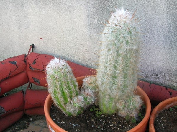 Ni tengo mayor interés por la jardinería, pero he abierto el libro de Mauseth, Kiesling y Ostolaza (A cactus odyssey. Journeys in the wilds of Bolivia, Peru, and Argentina. Portland: Timber Press, 2002) y he encontrado, en la pág. 280 y siguientes, una discusión de Oreocereus trollii en relación con O. celsianus y O. Hendriksenianus. De lo que pone se extrae que a diferencia de éstas O. Trollii es una planta tendida, es decir, que crece arrastrada sobre el suelo, que sólo se levanta en el extremo. De acuerdo con esa descripción tu planta no parece O. Trollii, pero no firmaría nada, porque ellos mismos muestran un agregado de pies breves pero totalmente erectos. No he encontrado en la literatura taxonómica ninguna revisión del género Oreocereus, salvo lo que incluye Berger —autor del subgénero luego admitido como género por Riccobono— en su revisión de 1905 del género Cereus (A systematic revision of the genus Cereus. Missouri Botanical Garden Annual Report, Vol. 1905 (1905), pp. 57-86). Este autor sólo menciona dos especies, Cereus celsianus y Cereus lanatus. Las imágenes que encuentras googleando, y que imagino ya has explotado, tampoco resuelven nada. Te sugiero que envíes la imagen a algún cactólogo experto en la región andina, como Roberto Kiesling.