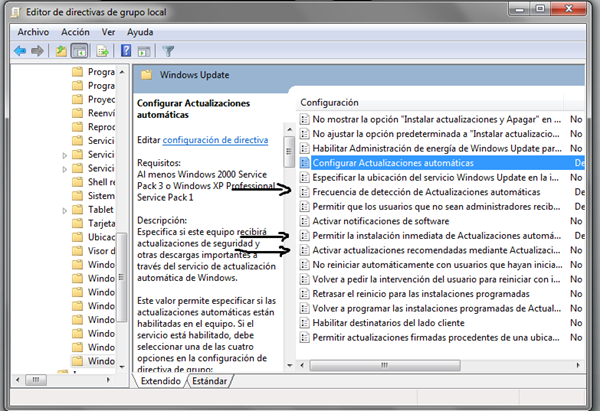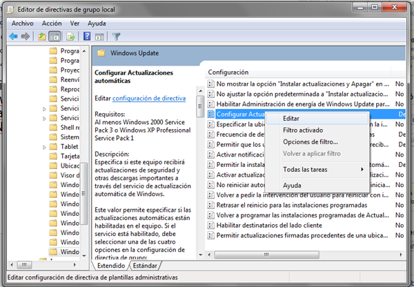 Damos en windows update y buscamos configuracion automatica> pulsa clic derecho en propiedades