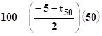 La suma de los 50 primeros términos de una progrecion aritmetica es 100. Si el primer termino es -5. Halla la razón.
