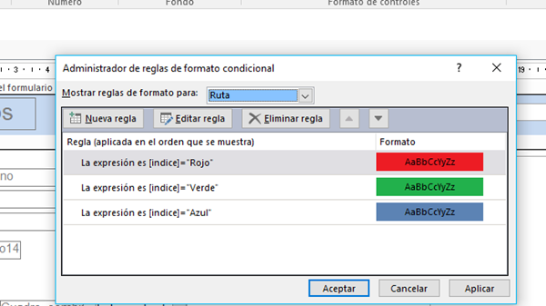 Tengo un cuadro desplegable llamado "Indice" con estas tres opciones desplegables "ROJO, VERDE, AZUL"