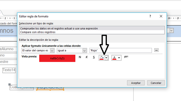 Formato condicional ACCESS, colorear dos campos