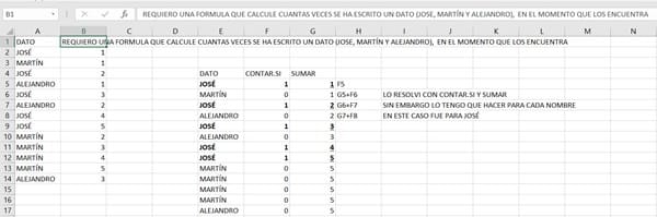 Fórmula que calcule cuantas veces se han escrito los datos, en el momento que los encuentra.