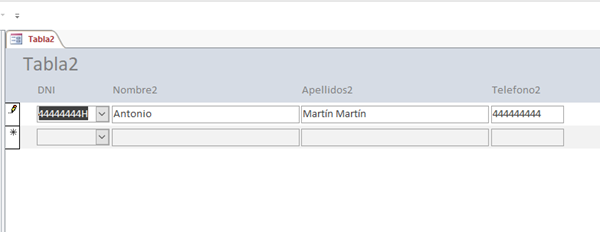 Supongamos que en la tabla 1 tienes DNI(texto), Nombre(texto), Edad)numérico), Telefono(numérico)