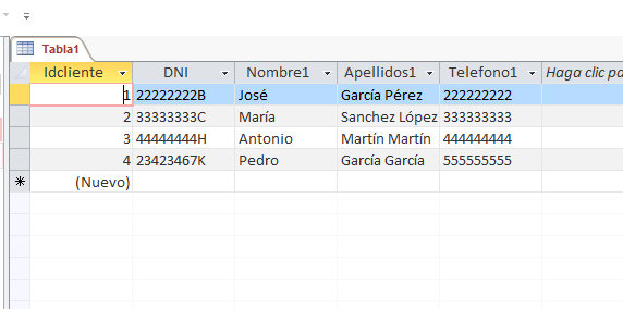 Creo que es mejor con imágenes. Tengo una tabla Tabla1 con