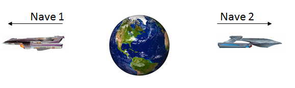 Dos naves súper avanzadas de guerra abandonan la Tierra en sentidos opuestos (ver Figura 1), cada una con una rapidez de 0,76c con respecto a la Tierra.