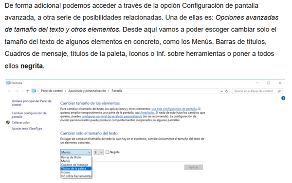 Como cambiar solo tamaño de texto en win10?