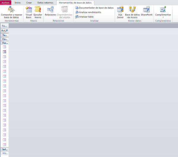Tengo un problemilla urgente a solucionar, dado que en una base de datos que usan bastantes usuarios no sé qué han hecho pero el panel de navegación se ha quedado achatado, que no se ve nada, y no puedo modificar su relación de aspecto (si os fijáis en la imagen, no tiene la barra para modificar anchura)