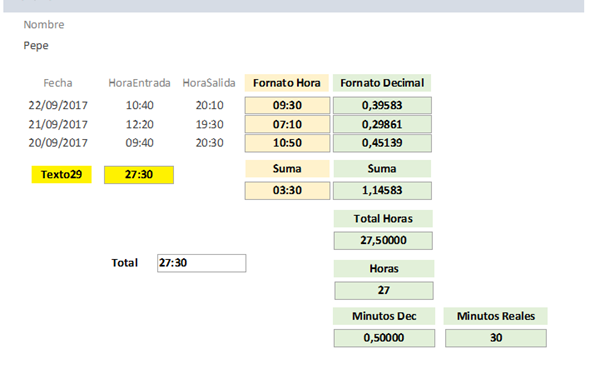 Expresión o fórmula para que sume las horas y minutos totales trabajados en un mes