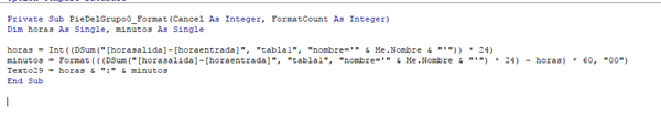 Necesito la expresión o fórmula QUE SE DEBA aplicar en Informe de ACCESS 2016 para que sume el total de horas y minutos trabajados en un mes.