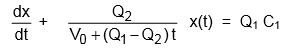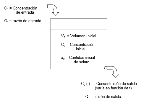 La ecuación diferencial asociada es la siguiente ecuación diferencial lineal, que permite encontrar la ley de variación de la cantidad de soluto x(t) en un instante de tiempo t