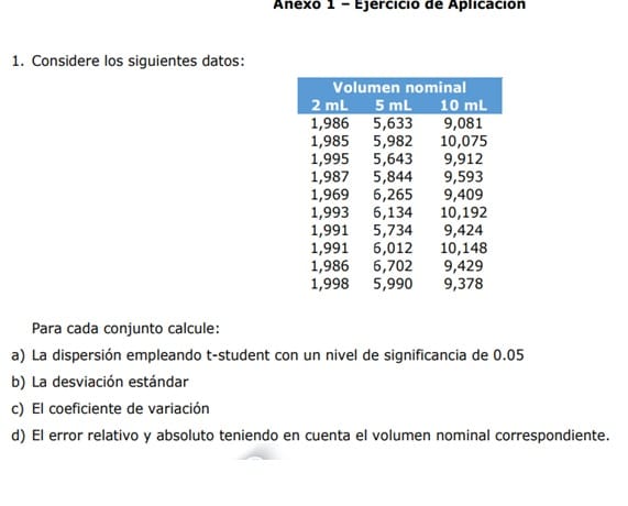 QuímicaQuimica analitica e instrumental Diego Landinez el 23 sep. 17 Anexo 1 – Ejercicio de Aplicación Considere los siguientes datos: Quien me puede ayudar con este ejercicio. Seguir Siguiendo Dejar de seguir