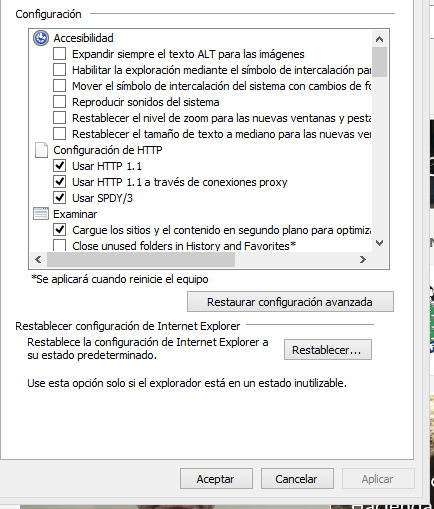 Cuando doy al Internet Explorer no me salen ni las pestañas, ni la barra donde pone "https//..." lo del historial, la barra de herramientas. Es decir no hay nada, solamente me aparecen las dos flechas de volver a lo anterior o posterior. Solo me deja buscar cosas en Google pero no me deja enviar nada ni descargar las cosas, porque cuando quiero descargar alguna aplicación me debería aparecer abajo la descarga y nada tampoco sale. ¿Qué puedo hacer? Me urge!