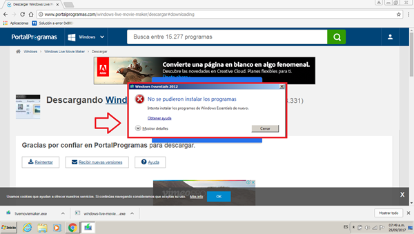 No puedo instalar el Windows Essential 2012
