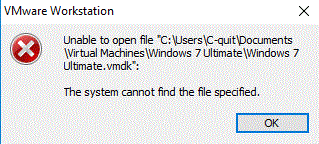 Tengo una máquina de windows 7 en VMWare y me quedó pausada, he intendado volver a arancarla y me indica el error: