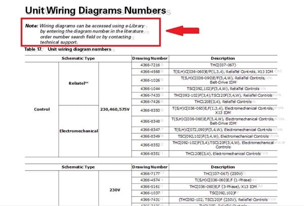 Les consulto que tengo en mi contrato de mantenimiento un aire acond Trane Tsc120F3DD08 del cual tengo los catalogo, pero resulta que el esquema eléctrico no viene en el catalogo, pero ahí me indican de como puedo obtener esos catálogos en la librería E-LIBRARY pero yo no se como entrar y descargarlos