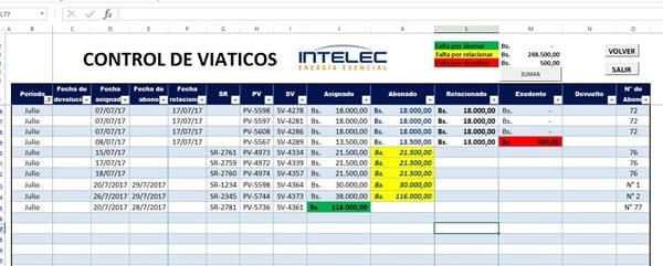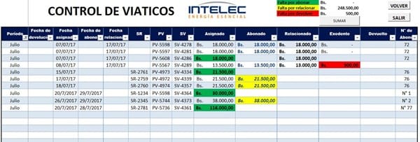 Tengo un macro para el control de mis viáticos, los mismo posees códigos para control interno de la corporación, en fin mi macro con tiene un listbox al cual se le cargan los datos de varias textbos y combobox, el problema esta en el momento de pasar los datos del listbox a la hoja de excel. En mi hoja de excel tengo estos datos.