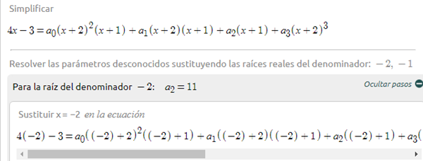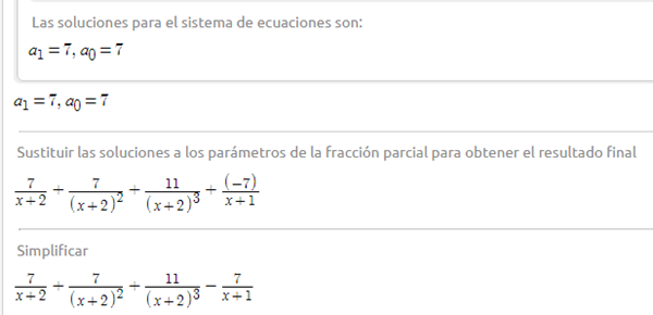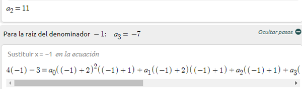 Resolver fracción parcial la siguiente función racional y compruebe