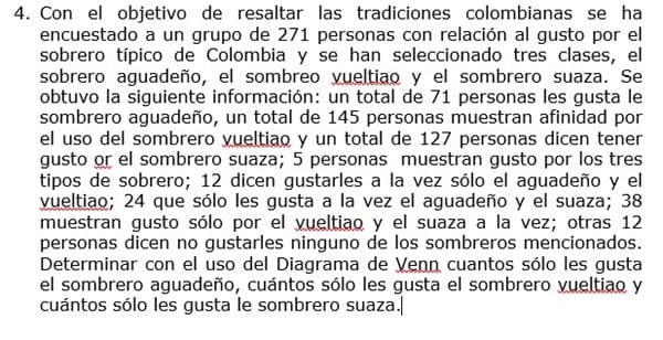 Creo que tienes un pequeño error en: "A)|soloSA|=|SA|-|SAintersecadoSV|-|SAintersecadoSS|+|SAintersecado SVintersecadoSS|=71-12-24+5=40"; y que debería ser: |soloSA|=|SA|-|SAintersecadoSV|-|SAintersecadoSS|-|SAintersecado SVintersecadoSS|=71-12-24-5=30.De esta forma quedarian: SA=30; SS=60; SV=90. - Norberto Pesce