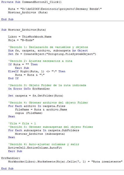Dim fs As Object, carpeta As Object, archivo As Object, subcarpeta As Object