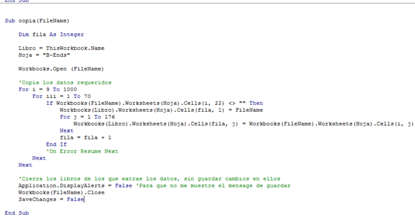 Workbooks(libro). Worksheets(hoja).Cells(fila, j) = Workbooks(Filename). Worksheets(hoja). Cells(i, j)
