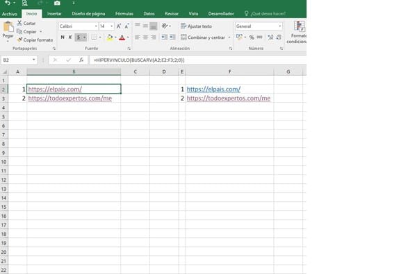 BUSCARV de Excel para traer un mail, página web o url manteniendo el dato activo (en azul)
