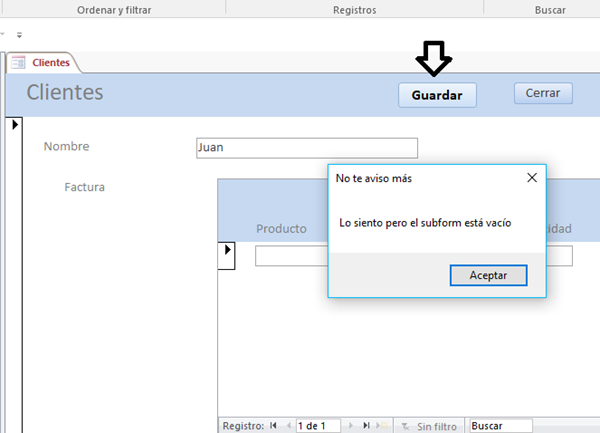 Tengo un Formulario con un SubFormulario, el cual estoy usando para llenar dos tablas relacionadas, dicha tablas deben de tener la mayoría de sus registros llenas, para lo cual usando programación de vba en el formulario he podido llegar hasta en un 80 % de mi cometido (se le programo a cada registro, si esta vacío, y al dar click al botón guardar que cambie el color de fondo amarillo junto con una etiqueta que se hace visible dando advertencia que el campo es Obligatorio y usando setfocus para ubicar el cursor en dicho campo, todo dentro de unos bucles anidados) mi limitación esta en que no he podido llegar al SubFormulario donde tengo un cuadro combinado junto con un cuadro de texto, el cuadro combinado me ayuda a registrar datos dentro del cuadro de texto, ya que el cuadro de texto tiene que registrar un código de identificación de una persona y como el usuario seguramente no va a saberse todos lo cdigos de las personas dentro de la base de datos, se usa un cuadro combinado con los nombres de las personas y al seleccionar en el cuadro combinado el nombre, el mismo cuadro combinado registra su respectivo código en el cuadro de texto, por lo que es necesario que el mismo no quede vacío debe tener al menos un registro y la cantidad de registros es ilimitada, cosa que con esto no tengo problemas, el detalle que tengo, es advertir que ese registro no debe quedar vacío, me gustaría usar los mismos bucles If junto con las funciones de cambio de fondo de color y activación de etiquetas que se están usando en el Formulario, si fuese posible, para simplificar la programación.