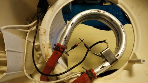 El primer interruptor (el original), se quemó de la pata central y el segundo de la pata del cable negativo o negro, protegido por una funda tramada. El cable negro va del interruptor hacia un termostato colocado en el cuerpo de la resistencia y midió: