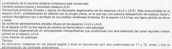 Tras recibir los siguientes hallazgos de una RMN actual, ¿es aconsejable la intervención quirúrgica con artrodesis instrumentada? Expongo Hallazgos: