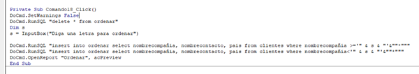 Me gustaría saber si es posible -Access 2003- ordenar los apellidos de un informe que viene de una consulta empezando por ejemplo por la letra j- J-K-L... A- B... I