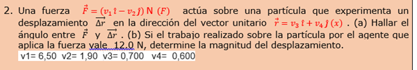 Una fuerza actúa sobre una partícula que experimenta un desplazamiento en la dirección del vector unitario . (a) Hallar el ángulo entre y .