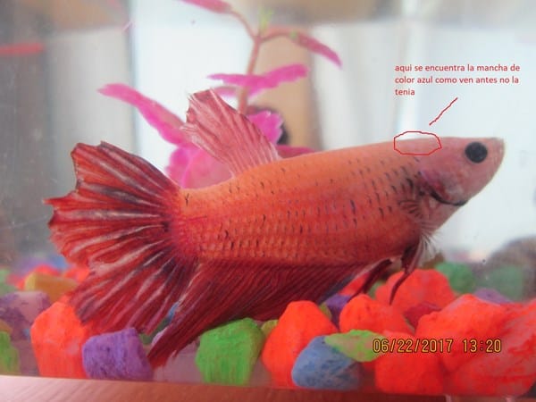 Malo: mi pez betta tiene una mancha azul al lado de su cabeza esta cambiando de color o es algo malo