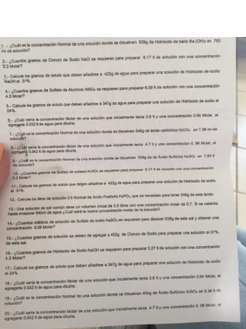 ¿Cuál es la concentración Normal de una solución donde se disuelven 539g de Hidróxido de bario Ba (OH)2 en 783 ml de solución?