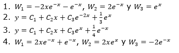 6. El método de variación de parámetros para dar solución a una ecuación diferencial de tercer orden establece que primero se encuentra la función complementaria
