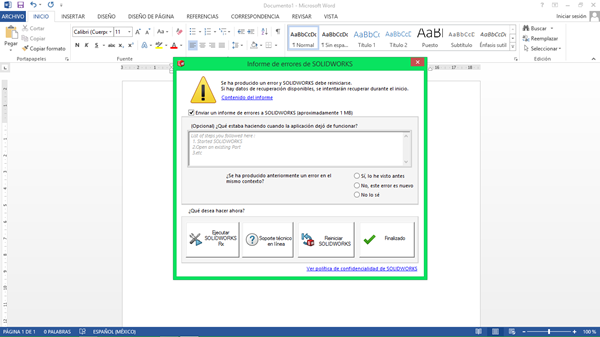 Bueno, eh instalado el programa SolidWorks ya sea 2016 o 2017 y al momento de querer crear un nuevo documento para hacer un dibujo (Pieza) el programa deja de funcionar y me sale que debe cerrarse.