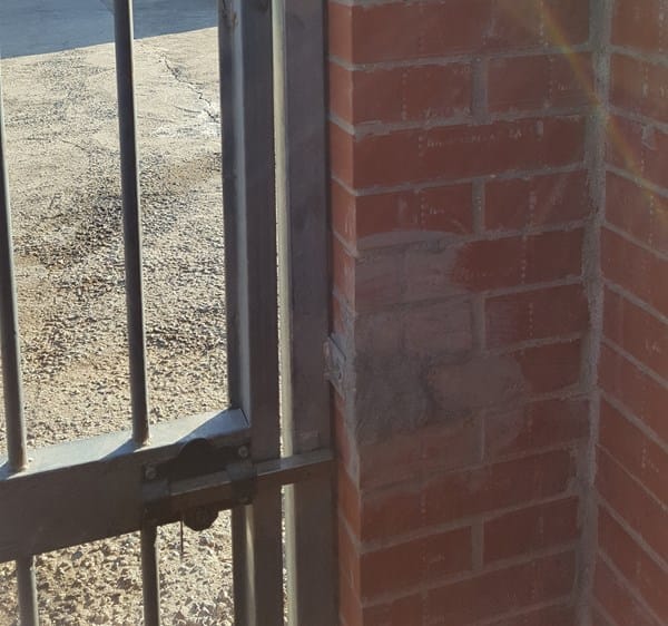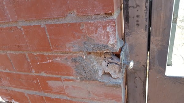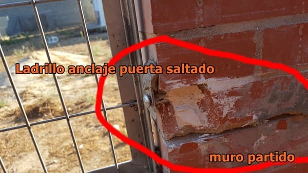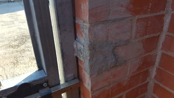 Ladrillos saltados de los anclajes de la puerta