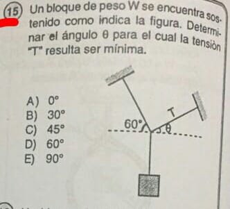 Tx = W / ( sen theta + V3 cos theta) ... para que minimice tendra que ser maximo el denominador ... lo derivas y anulas :