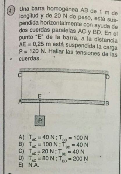 Una barra homogeneada, hallar las tensiones de las cuerdas - estática