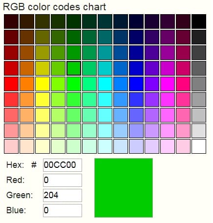 Si te fijas va en el orden como muestra la tabla Red=0,Green=204, Blue=0