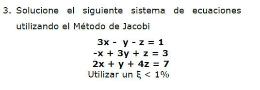 Solucione el siguiente sistema de ecuacionesutilizando el Método de Jacobi