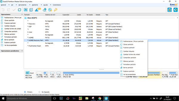 ¿Cómo eliminar una partición de recuperación que yo creé y recuperar 90Gb?