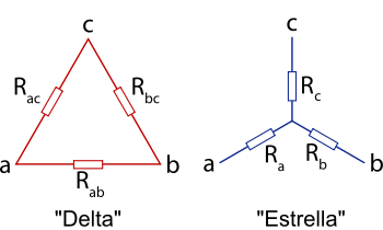 Estas tensiones se transportan por un sistema de 3 conductores (3 fases), o de cuatro (tres fases + un neutro). Por convención las fases se denominan R, S, T, y N para el conductor neutro si existe.