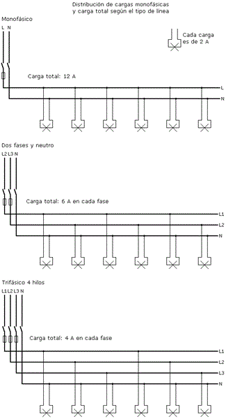Generalmente doméstico porque esa línea o fase no da un ancho de voltaje muy poderoso, de 230v ± 10%, (rango en el que entra la española de 220v .Para la alimentación de una planta de producción textil, por ejemplo, usarían un sistema trifásico, que constaría de tres cables conductores de la electricidad, siempre que ésta fuera de misma amplitud y frecuencia en los tres cables, pero con un desfase (y de ahí viene la palabra), entre cada una de 120 grados que permitiría circular organizadamente a la energía. 120 grados entre cada uno de 3 polos magnéticos equidistantes entre ellos, que serían la fuente de energía.