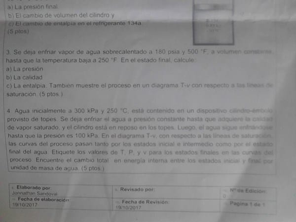 Necesito ayuda urgente para resolver tarea de termodinámica para mañana, son problemas simples de sustancias puras y una tabla para el agua en diferentes presiones y temperaturas que se deben justificar las respuestas.