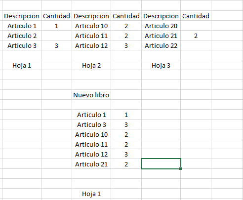 La idea si es posible que me guarde todas las filas de las distintas hojas utilizadas en un nuevo libro.