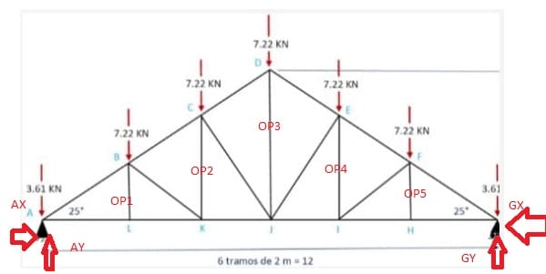 Ayuda para calcular las fuerzas internas por el método de nudos y la comprobación por el método de secciones.
