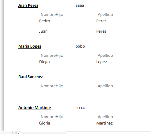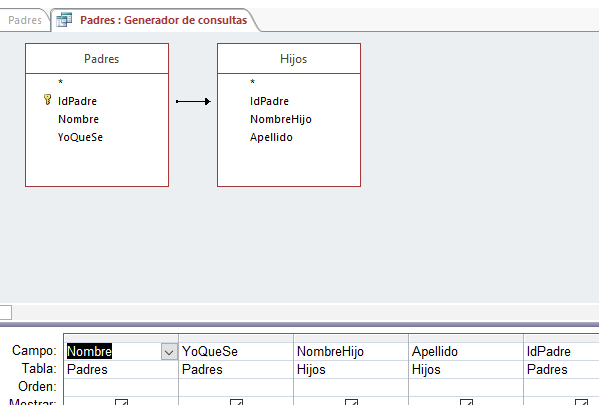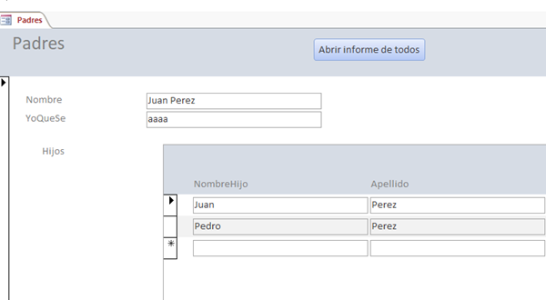 Tengo un formulario con datos de padres. También contiene un subformulario con los datos de los hijos. Al lanzar un informe desde el formulario (El informe tiene como origen de datos una consulta) este se repite tantas veces como registros tenga el subformulario.