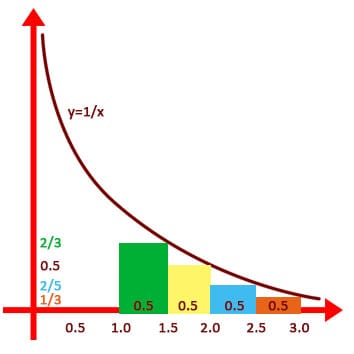 f(x)= 1/x, 1 ≤ x ≤ 3, para 4 intervalos iguales