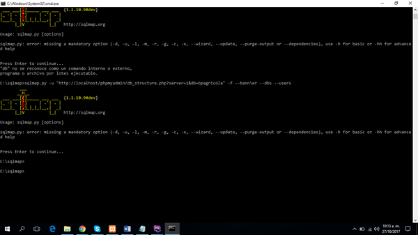 El error que me sale es te "sqlmap.py: error: missing a mandatory option" si es posible si alguien me puede ayudar con esto