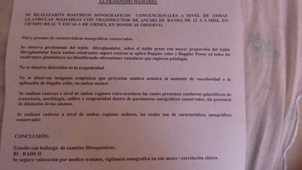 ¿Alguien me dice que significa mi ultrasonido mamario?