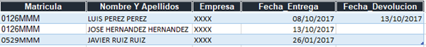 Matricula Nombre Y Apellidos Empresa F_Entrega F_Devolucion